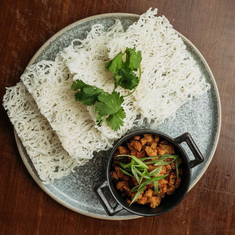 Fine rice crackers, beancurd, onion, chilli soy sauce
